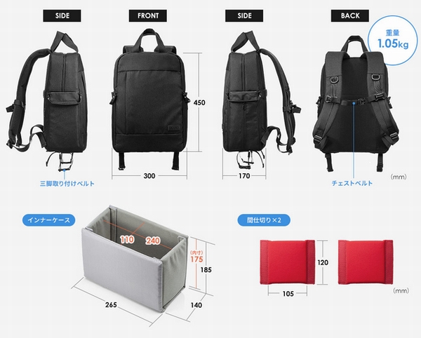 サンワサプライ株式会社は、同社が運営する直営サイト「サンワダイレクト」などにおいて、リュックのサイドに開閉ファスナーを搭載したカメラリュック「200-DGBG016」を発売開始した。価格は6000円(税別)。