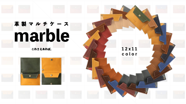 12☓11=132種類の配色パターンから選べる! 自分だけの革製マルチケース「marble」登場