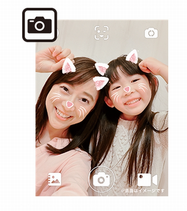 メインカメラでは500画素の写真を撮ることができ、撮った写真を100種類以上のスタンプで編集して、家族にメールで送ることができる。