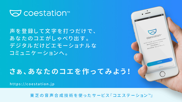 東芝デジタルソリューションズ株式会社は、自分の声をデータ化して、音声合成で喋らせることが可能なiPhoneアプリ「コエステーション」を提供開始した。App Storeから無料でダウンロードできる。