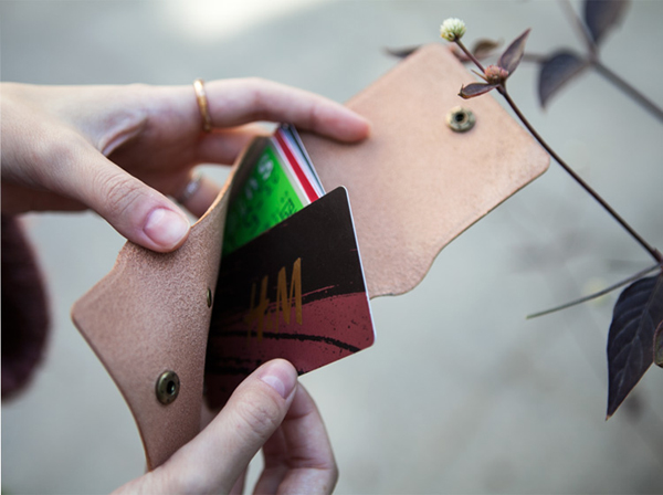 同製品は、デザイナーが様々な形状を研究し、2ヶ月間の試行錯誤の末にたどり着いた“究極のミニマル財布”である。驚くほどのコンパクトサイズで、紙幣35枚、コイン40枚、カード8枚、名刺16枚の収納力を誇り、表面・裏面にひとつづつあるホックが中身をスムーズに取り出せるよう、よく考えられた設計になっている。