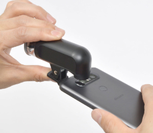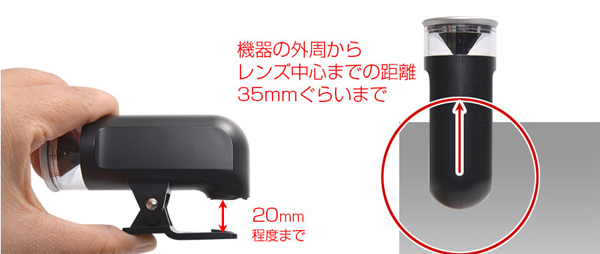 レンズのサイズは、幅33×高さ86×奥行56mmで、重量31g。厚さ20mm以下、機器の外周からレンズ中心までの距離が35mm以下のスマートフォン・タブレットであれば使用することが出来る。対応OSはAndroid4.4以上。