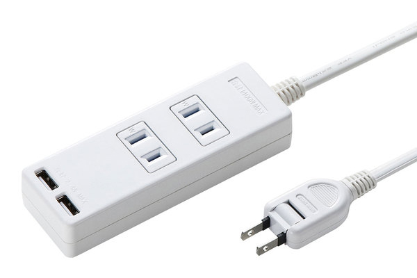今回発売された製品は、USB-AC変換アダプタなどを別途に用意せず、USBケーブルだけでスマートフォンやタブレットの充電にも活用できる電源タップだ。「TAP-B102U-2W」と「TAP-B101U-2W」のUSBポートは、2ポート合計で2.4Aまでの出力に対応。USB端末の2台同時の充電や、タブレット1台の急速充電に対応する。