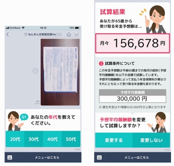 名案企画株式会社は4日、LINEのトーク上で、ねんきん定期便をもとに年金額を試算できるアプリ「LINEでねんきん定期便試算」をリリースした。
