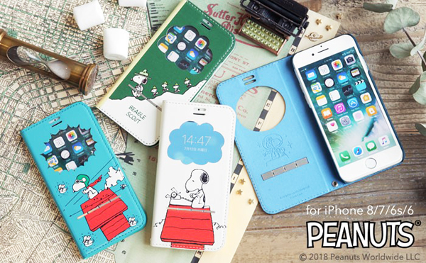 Hamee株式会社は、8月8日、米国のPeanuts Worldwide LLCとのライセンス契約のもと、「PEANUTS」キャラクターたちのデザインを施した「iPhone 8/7/6s/6専用 PEANUTS/ピーナッツ/フリップ窓付きダイアリーケース」を販売すると発表した。販売価格は2,800円(税抜)。