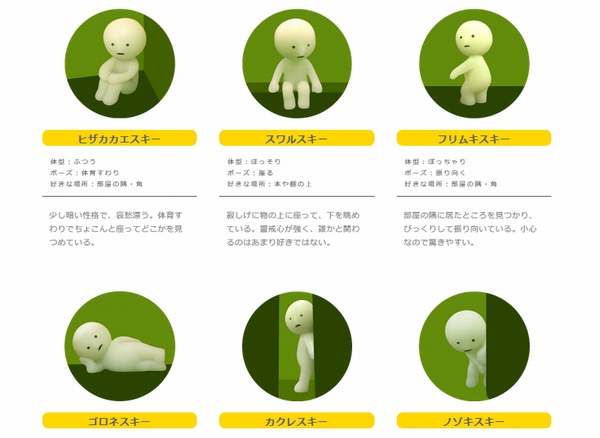 「スミスキー」には純粋なフィギュアとして販売されるシリーズもあり、体育すわりをした「ヒザカカエスキー」や寝そべる「ゴロネスキー」と一緒に飾ってもインテリアとして楽しめる。
