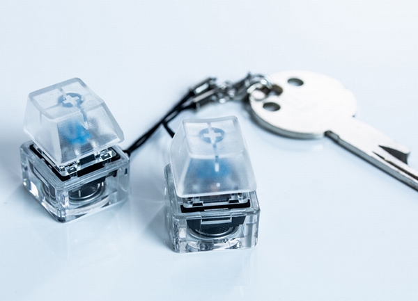 あらゆる場所で青軸のカチカチ打鍵感を楽しめる「メカニカルスイッチキーホルダー」