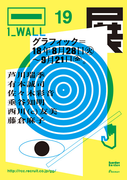 株式会社リクルートホールディングスが運営するギャラリー「ガーディアン・ガーデン」で、2018年8月28日(火)から9月21日(金)まで、第19回グラフィック「1_WALL」展が開催される。「1_WALL」は、次世代を担う若手の発掘を目的とし、個展開催の権利をかけた公募展。ファイナリストによる展示が繰り広げられ、会期中に一般見学者にも公開される最終審査会でグランプリが決定する(最終審査会の入場は完全予約制)。