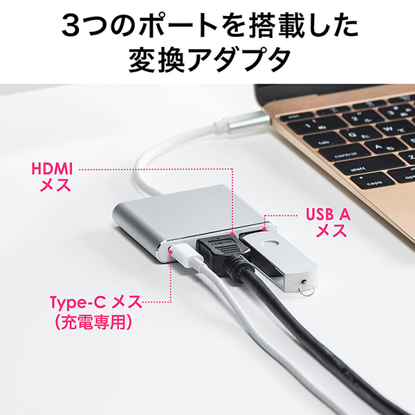 サンワサプライ、Type-Cポート接続でHDMI、USB、Type-C充電ポートへ変換できるマルチアダプター発売