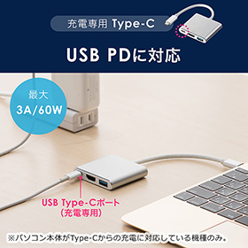 本製品は、映像出力に対応したUSB Type-Cポートに接続することで、HDMI、USB、Type-C充電ポートに変換できるマルチアダプター。最大4K/30Hzで、液晶テレビやプロジェクターなどに出力することができる。USB PDに対応した充電専用USB Type-Cポートが搭載されているため、HDMI出力を行いながら、Type-Cポートからの充電をすることも可能。USBポートはUSB3.1 Gen1に対応している。