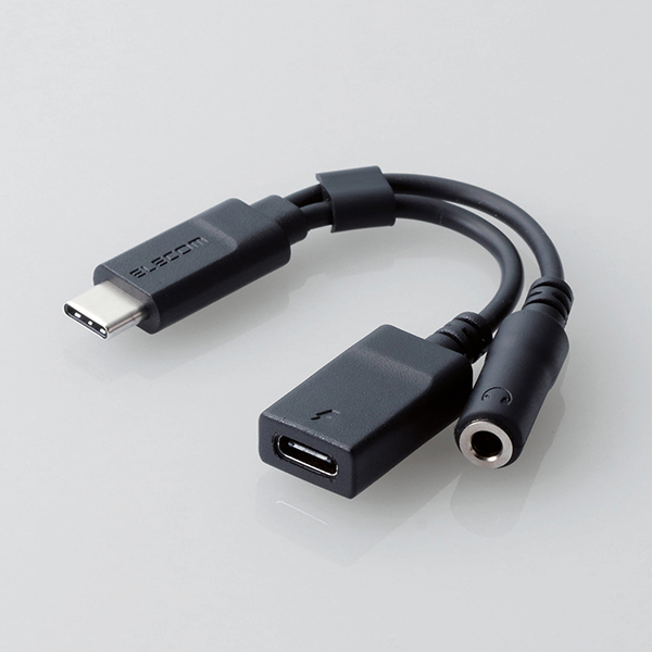 エレコム、Type-C端子をステレオミニ端子と充電用USB端子に変換できるアダプタを発売
