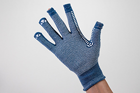 スライドタッチ eksは、高機能繊維【eks】®を採用した高性能スマホ対応手袋。年間を通して手袋の利用機会が多い運搬作業や倉庫作業などで、快適に使用することができる。親指から中指までの3本の指先は、意匠登録済の「パイプ編み加工」となっており、指先を自由に出し入れすることが可能。釣りやジョギングなど、屋外でのスマートフォンやタブレット操作が必要な状況での利用も想定されている。
