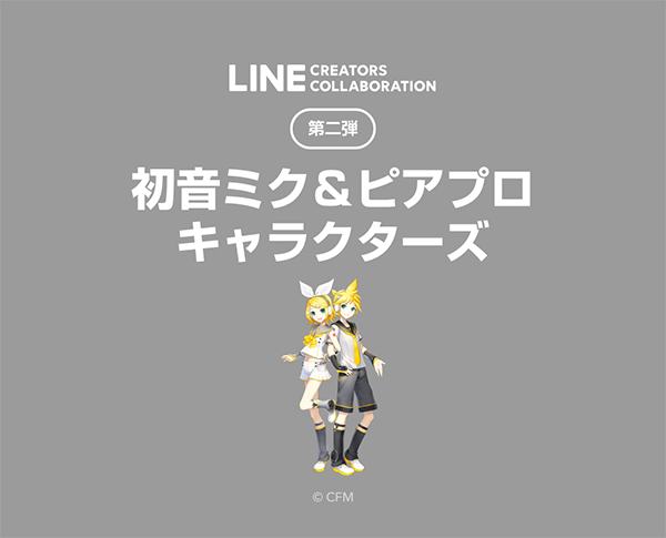 LINE株式会社は、「LINE Creators Collaboration」の第2弾として、「初音ミク&ピアプロキャラクターズ」のLINEスタンプの販売を開始した。初音ミクをはじめ、鏡音リン、鏡音レン、巡音ルカ、MEIKO、KAITOなど、クリプトン・フューチャー・メディア株式会社が展開するバーチャル・シンガーが勢揃い。価格は120円〜となっている。