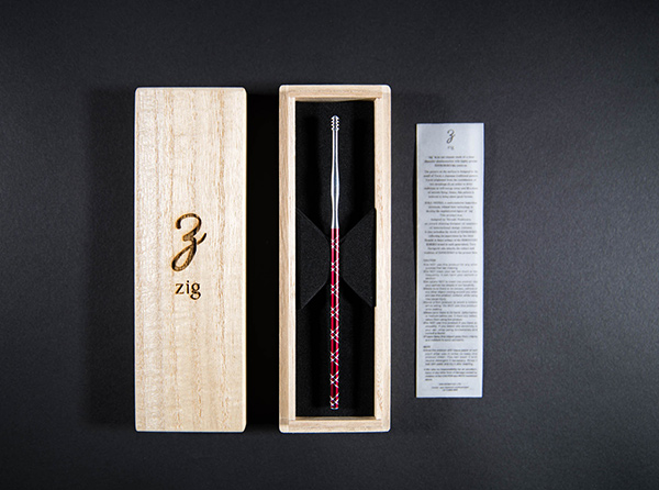 「zig」の制作プロジェクトは、理化電子株式会社の社内コンペ「アイディア製品プレゼン大会」に端を発する。同社は半導体検査部品メーカーで、ミクロの加工技術を利用して新製品を作れないかという発想から企画が生まれた。デザイナーの西村ひろあき氏を企画段階から迎え、“日本の伝統的なものづくり”をテーマに設定。江戸切子職人の三代秀石 堀口徹氏に監修を依頼し、伝統工芸の本質を追求した製品に仕上げられた。