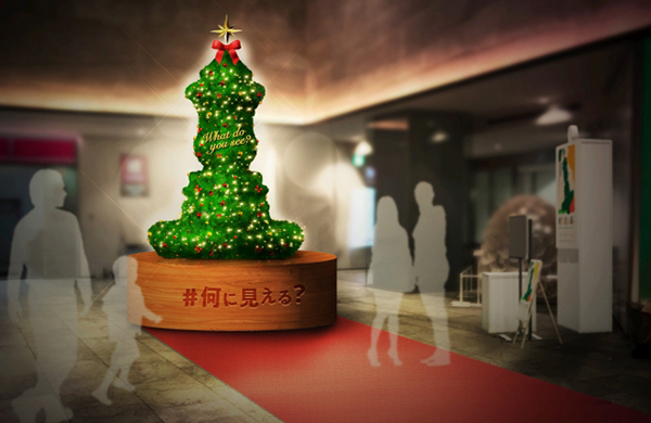 本展のコンセプトは、“視点を変えると、大切なことに気付く”というもの。会場のB4F えきまえ広場には、図と地の関係を巧みに活用した有名な「ルビンの壺」のように、“視点を変えることで違ったものに見える”クリスマスツリーが登場する。このツリーは、じっと見つめると向かい合う2人が浮かび上がってくる不思議な造形だ。そのほかにも、視点を変えることで答えが見つかる謎解きゲームなど、さまざまな仕掛けやゲームでの体験を通じた“視点を変える”コンテンツを展開。一例として、1F グランドガレリアでは、視点を変える面白さを体験できる「ワクワクトリックアート」が展示される。