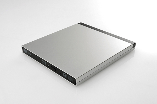本製品は、9.5mmの薄型ドライブを採用している。筐体にはシルバー塗装が施されており、Apple製品とマッチしやすいデザインだ。ディスクローディングはトレー方式。大容量メディアのBDXLへの書き込みや、ディスクイメージの作成、音楽CDの作成、ディスクの消去などにも対応している。