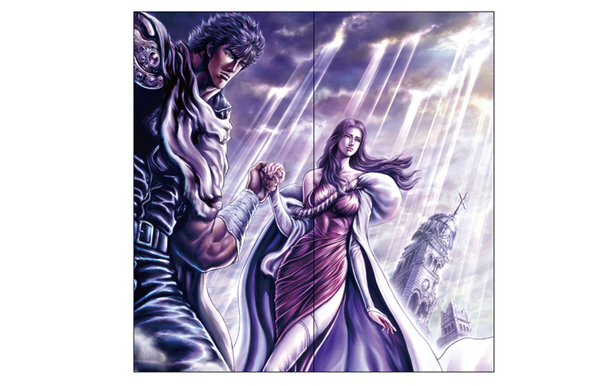 大迫力の2枚1組タイプは「ラオウ 巨星落つ」「旅立ち」の2種。同作主役級キャラクターのラオウ、ケンシロウ、ユリア、それぞれのラストシーンを描き出す。