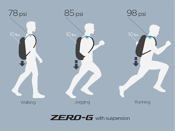 本製品は、重量分散型4点式サスペンションシステムを搭載したバックパック。ビジネスシーンやカジュアルな場面でも利用できるデザイン性と、高度な機能性を併せ持っている。世界初となる、サスペンション機能は、走ったりジョギングしたりと、激しい運動をするほど荷物の重量が軽く感じられるという設計となっている。ショルダーの上下4点に付いたサスペンションが、衝撃の力を吸収分散する。