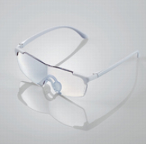 本製品は倍率1.8倍のハンズフリールーペ。普段使いのメガネとの重ねがけに対応し、レンズに幅と高さをもたせたデザイン。顔にフィットする柔らかフレーム採用、レンズの裏側に施された光が反射しにくい「AR コート」により光のチラつき低減、柔らかくすべりにくい鼻パッド搭載により、長時間の使用でも疲れにくくなっている。