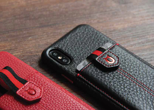 「Strap n Go」は、ポケット付きラップ型ケース。3枚までカードを挿し込むことが可能となっている。イタリア製高級レザーの質感と機能性をミックス。