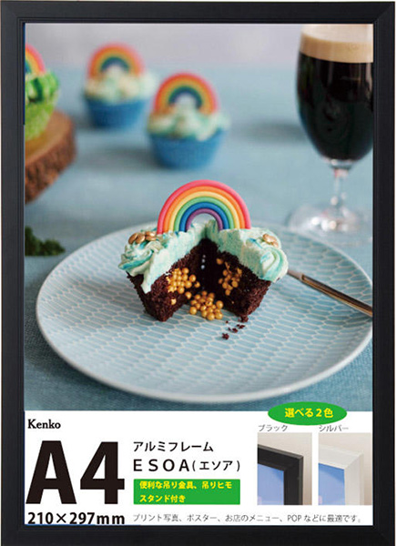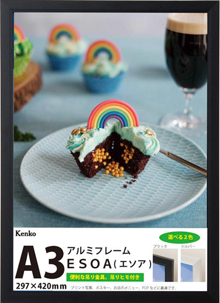 株式会社ケンコー・トキナーは、額縁の新製品として「ESOA(エソア)」を発売した。マット台紙がなく、そのままプリントを入れる「OAフレーム」。A3サイズ(297×420mm)に対応するモデルと、A4サイズ(210×297mm)に対応するモデルがあり、それぞれでブラックとシルバーのカラーバリエーションが用意されている。希望小売価格はA3サイズが各1494円(税抜)で、A4サイズが各1270円(税抜)。