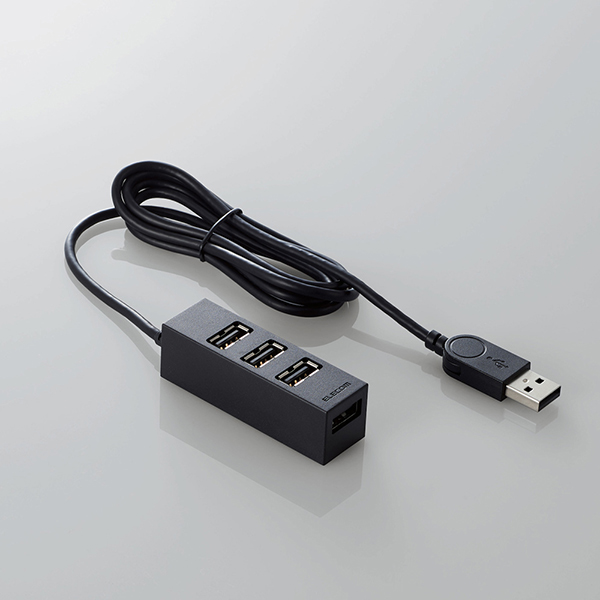 本製品は、USB 2.0/1.1に対応し、バスパワー時には4ポート合計で400mA(1ポートあたり100mA未満)、セルフパワー時には4ポート合計で2000mA(1ポートあたり500mA)の電流供給に対応する。筐体にはコネクタの抜き挿しがしやすい斜め30°設計、USBコネクタには横方向にも180°回転が可能なスイングコネクタが採用された。