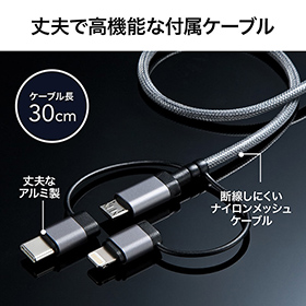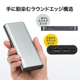 サンワサプライ、3in1ケーブル付きアルミ筐体の10,000mAhモバイルバッテリー発売
