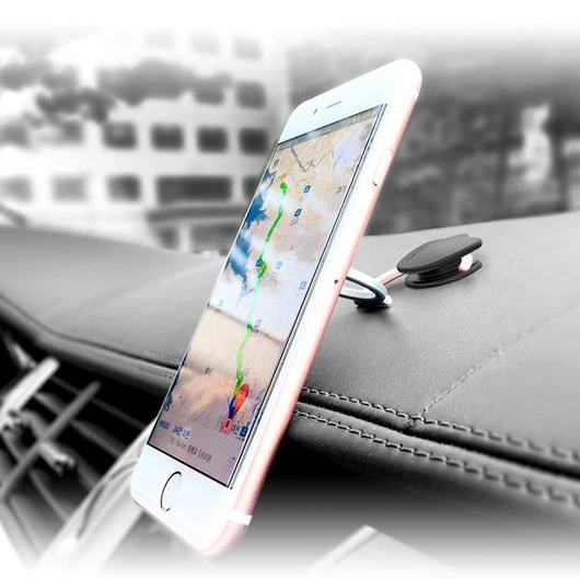 2つ目のリングは真円ではなくカギ型になっているので、様々な場所にひっかけてスマホを吊り下げることが可能。商品にはシールで貼り付けられる「フック」が2つ付属しており、車のダッシュボードなど滑らかな場所には、フックを貼り付けて吊り下げることもできるようになっている。