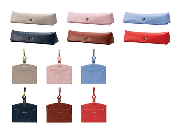 ペンケース(1,600円/税抜)、IDホルダー(2,000円/税抜)、パスケース(2,200円/税抜)、名刺ケース(2,200円/税抜)は全6色。ステーショナリーケース(2,500円/税抜)、クリップファイル・A4(3,800円/税抜)、ノートカバー・A5(2,800円/税抜)は、マロンブラウンとスカーレットレッドを除いた4色から選ぶことができる。