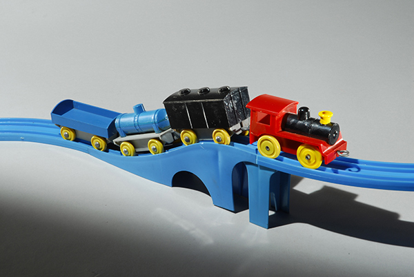 本展は、1959年に発売された初代「プラレール」の「プラスチック汽車・レールセット」や、1961年に発売された初電動走行車両「電動プラ汽車セット」などの初期のプラレールを目にすることができる貴重な機会。カメラを搭載した車両、本物のような“蒸気”が出る車両、手転がしで発電できる車両、スマートフォンと連動できる車両など、平成の31年間で多様な進化を遂げたさまざまな「プラレール」も紹介されている。展示数は、昭和と平成を合わせて全部で約50点だ。