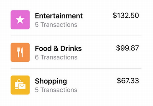 支出の管理機能もあり、購入したものをカテゴリーごとに色分けして表示され、視覚的に自分の支出傾向を把握できる。