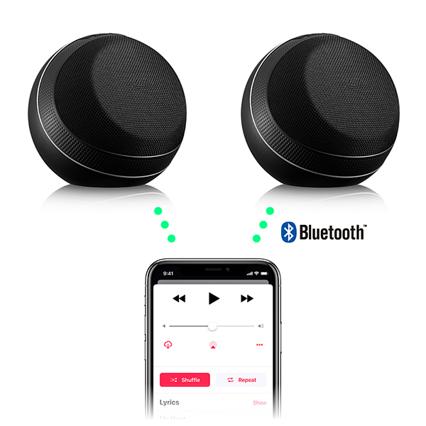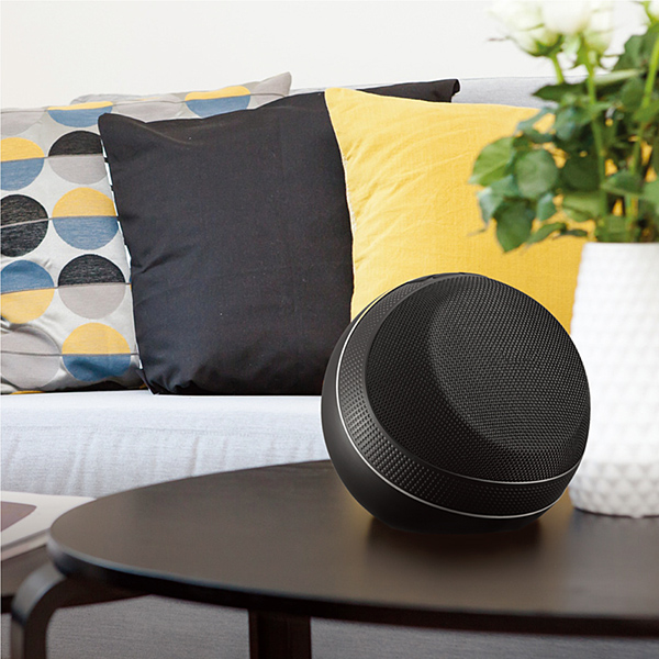 MusicSphereは、空間を音で満たすことが可能なBluetooth4.2接続対応スピーカー。本製品を2つ使用することで、ワイヤレス接続でありながら、ステレオで音を楽しむことができる。TWS(True Wireless Speaker)技術対応で、自動的にステレオサウンドとなるため、設定やケーブル接続などの煩わしさがない。また、ペアリングは最近接続した機器を8個まで記憶する。