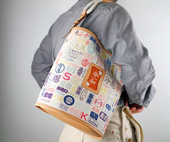 本製品は、新元号である"令和"をテーマとした新元号記念バッグ。帆布とヌメ革仕立てが特徴のデザインとなっている。バッグ中央部分に日本の伝統色に彩られた新元号を配し、ヌメの額に縁どられている。額部分は、カード入れとして使用することも可能。また、全体のデザインには、これまでの元号を抜粋して使用している。247の元号から、字揃いの美しいもの、想いの強い漢字を選定。表記は漢字だけでなく、ひらがなや英語にすることで、デザイン性を高めている。