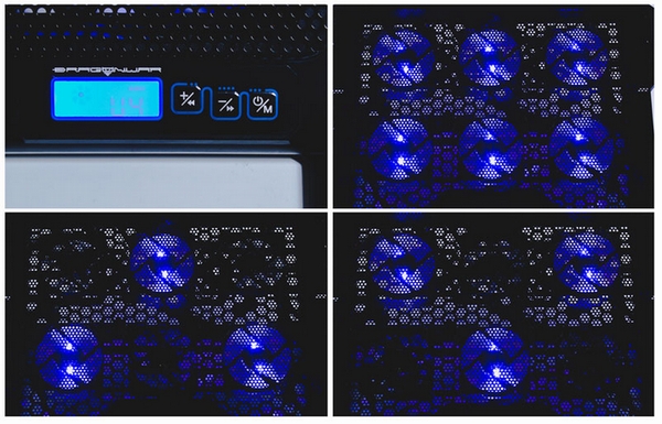ファンのスピードは6レベルの速度(800~2000RPM)で変更することができ、液晶画面でファンの状況を確認できる。また、動作する数も操作でき、6個全部作動、3個作動(三角形/逆三角形)と変更可能。