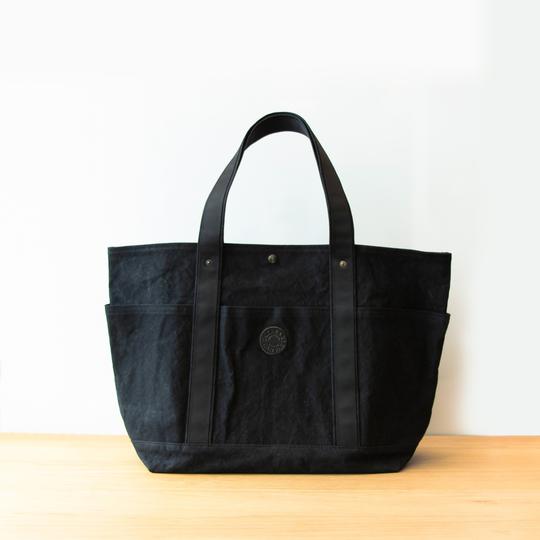 本製品は、雨の日やアウトドアでも活躍する特殊撥水加工の万能トート。ブラックで統一されたシンプルなデザインと丈夫な撥水機能を持つため、家族とシェアして利用がしやすい。パラフィン加工を施すことでできるチョークマーク(白い跡)が特有のヌケ感を演出。また、収納力にも優れており、A3サイズがすっぽりと入る。内側と外側にそれぞれ3つのポケットがあり、カギや財布などを整理してしまうことが可能。