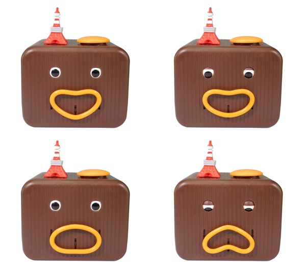また、お金をいれるたびにくるくる変わる表情も魅力の一つ。目と口が同時に動くことで絶妙な表情となり、思わずもう一言、二言しゃべらせたくなる、人間味あふれる不思議な貯金箱である。