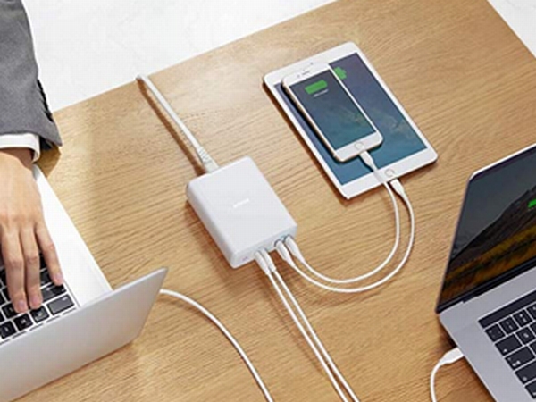 Appleデバイスで例えると、MacBook Pro13インチモデルを2台、さらにiPhoneやiPadを2台の合計4台を同時充電できる。各デバイスのアダプタをコンセントにつないで充電することを考えると、これ1台でまかなえるのは大きなメリットだ。