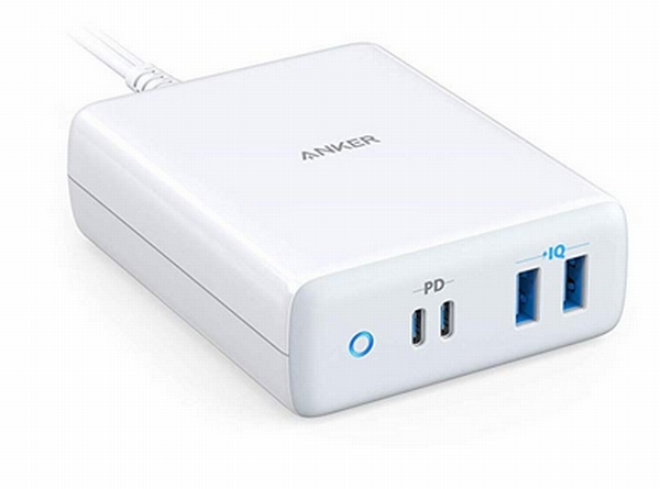 本製品はAnker史上最大のパワフルさを備えた急速充電器。これまでは最大30W出力だったが、一気に3倍以上となる最大100W出力に対応。USB PDに対応したUSB Type-CポートとAnker独自の急速充電技術PowerIQ搭載のUSB Type-Aポートを2つずつ備え、4台同時充電も可能とする。