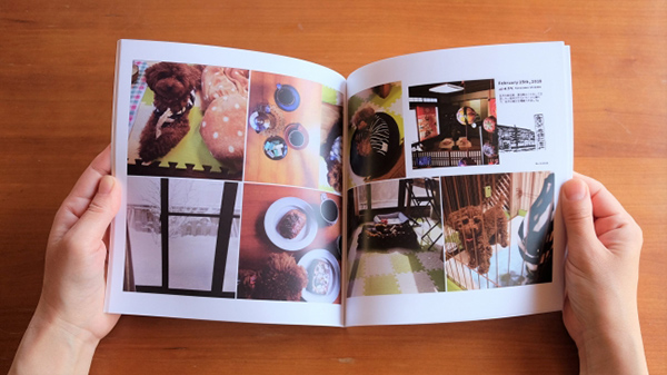 商品ラインナップには、1つのタイムライン投稿を1ページに配置する「1Pタイプ」、見開きの左ページに日付と文章を配置して右ページに写真を掲載する「2Pタイプ」、Facebookのフォトアルバムだけをまとめて、多くの写真を効率良く配置した本にできる「フォトアルバムタイプ」を用意。複数枚写真の投稿に対応し、1ページにつき最大で5枚まで配置され、自由な入れ替えも可能だ。そのほか、今回のリニューアルでは、オンライン上でのサンプル作成時間が従来の約5分の1に短縮され、生成したブックサンプルをオンラインで確認しながら編集作業を行えるようになるなど、スムーズな操作が実現された。