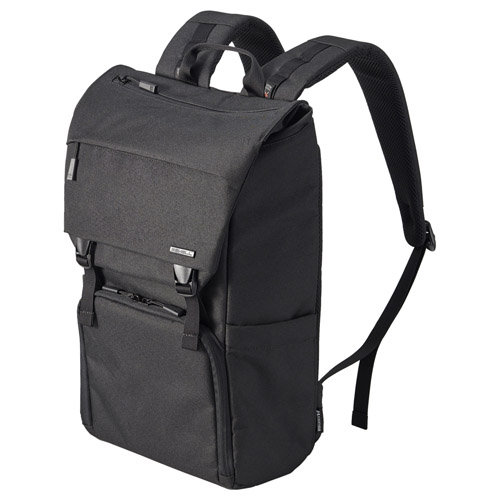 フラップバックパックは、一覧性の高いフロントアクセス構造のカメラ収納部と、フラップトップの上部収納部からなる2気室を装備し、13インチ相当のノートPCを収納できる。