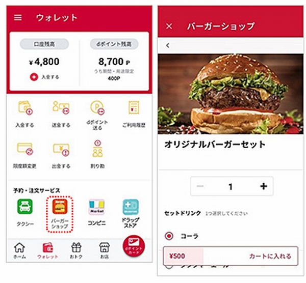 新機能の1つめは「d払い ミニアプリ」。これは、d払い加盟店がスマートフォン上で提供している事前注文、事前決済などの様々なサービスをミニアプリに集約するもの。ユーザーがファーストフード店やコンビニエンスストアなどの各ブランドのアプリをそれぞれダウンロードすることなく、加盟店が提供するアプリ機能をd払いアプリ上で利用可能になる。