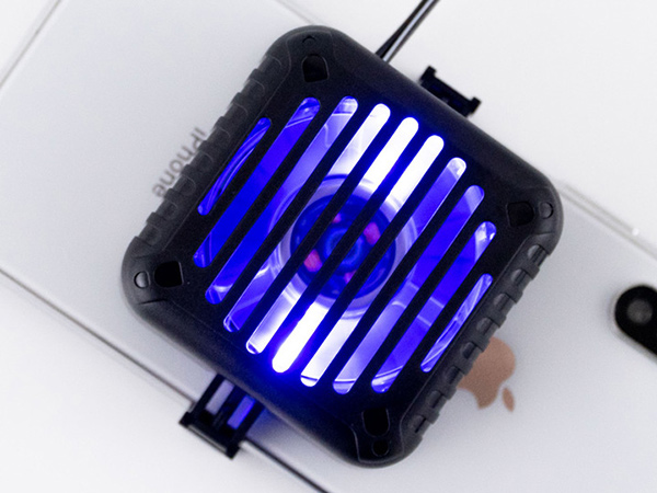 本製品は、スマートフォンが熱くなってしまいやすいゲームプレイの際などに特に便利なアイテムだ。コンパクトな設計であるため操作の邪魔にはなりにくく、さまざまな場所への持ち運びもしやすい。使用時には、本体に実装されているバネ式のクリップによってスマートフォンに固定。バッテリー内蔵型ではなく、モバイルバッテリーなどとUSBケーブルで接続することで駆動する(5V/0.3A)。