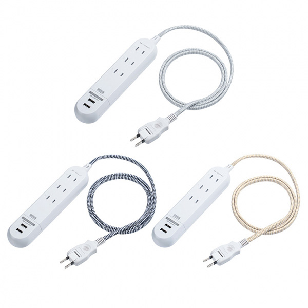 サンワサプライ株式会社は、直販サイト「サンワダイレクト」にて、ファブリックコードを使用したUSBポート付き電源タップ「700-TAP041シリーズ」を発売した。