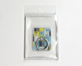 スマホリングは1個ずつ専用ケースに梱包されるため、傷が付かず、そのまま配布したり、店頭に商品としてそのままラックに掛けて陳列したりすることができる。