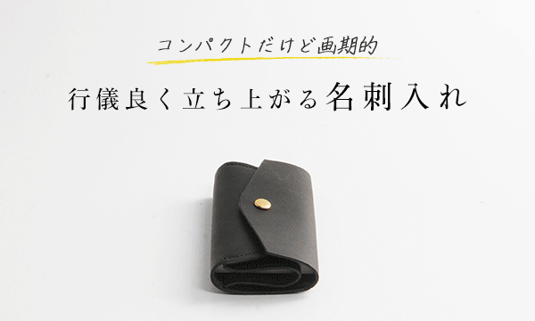 「名刺が立つ名刺入れ」は、天然皮革の“はり”を利用して作られたユニークな名刺入れ。開くと名刺が立ちあがり、欲しい枚数を簡単に取り出せるポジションをキープする。行儀良く立っている名刺は、ビジネスシーンでも好印象を与えてくれることだろう。収納可能枚数は25枚程度。