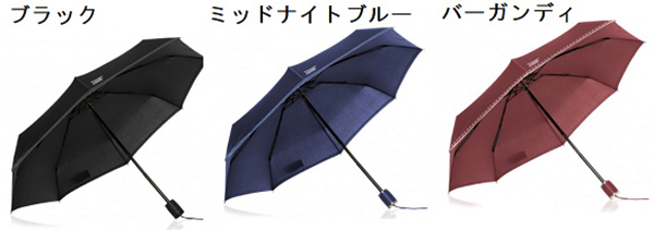 「beau-nuage」のサイズは、折りたたみ時の長さが約20cmで、開いたときの直径が90cm。重量は290gで、カバーを含めた場合の重量は350gなので、持ち運びがしやすい。カラーバリエーションは3種類で、ブラック、ミッドナイトブルー、バーガンディを取り扱う。