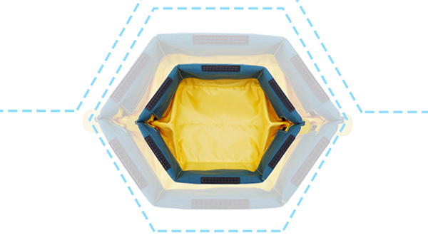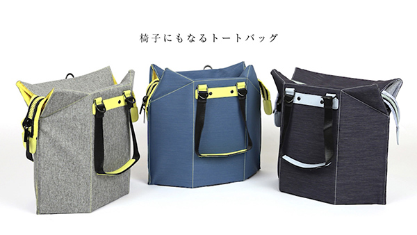 「Seatbag」は、バッグと椅子という2つの機能を持つアイテム。マチを広げると、六角形になりすぐに座ることができる。安心して座ることができるよう、耐荷重は100kgに設計されている。行列に並ぶ際やアウトドアなどのシーンで活用可能だ。また、ポケットが9つ付いていて、収納力が高い。内側に異なるサイズのポケットが7つ、両脇にメッシュポケットが2つ付属している。