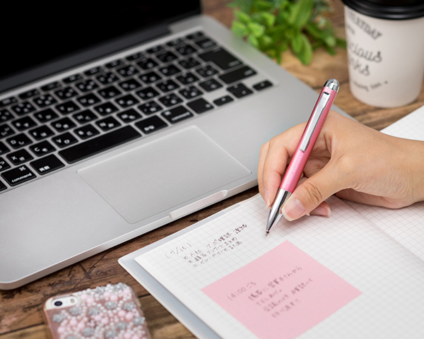「クルリ」は、テレワークで移動することが多い人でも利用しやすい小さなボールペン。ボディが従来品より約20%コンパクトになっており、仕事中に持ち歩きやすいボールペンが欲しいという女性利用者のニーズに対応した文具だ。ビジネスシーンでも自然と利用できる金属製の上品なデザイン。
