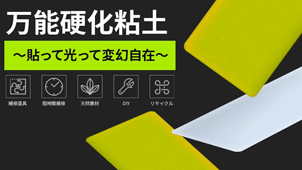株式会社アーバンフレックスは、万能硬化粘土「PHONDY」を販売するための支援調達プロジェクトを、クラウドファンディングサイト「Makuake」にて開始した(https://www.makuake.com/project/phondy/)。ケーブル止めやファスナーの引き手などが取れた時の補修用として利用でき、さまざまな創作・DIYへの活用の道も考えられる粘土。デンプンと蓄光型レアアースを素材としており、日光や照明を吸収して暗い場所で光る。