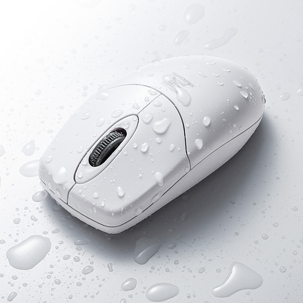 「400-MA113W」は、防水防塵規格IP68を取得したワイヤレスマウス。汚れた場合でも水洗いすることができ、抗菌仕様となっているので、不特定多数の人が利用する公共施設や病院などでの利用がしやすい。クリック音は約30dbで、従来マウスの約55db程度と比べるととても静かな仕様だ。形状はシンプルな対称形なので、左右の利き手に関係なく利用することができる。